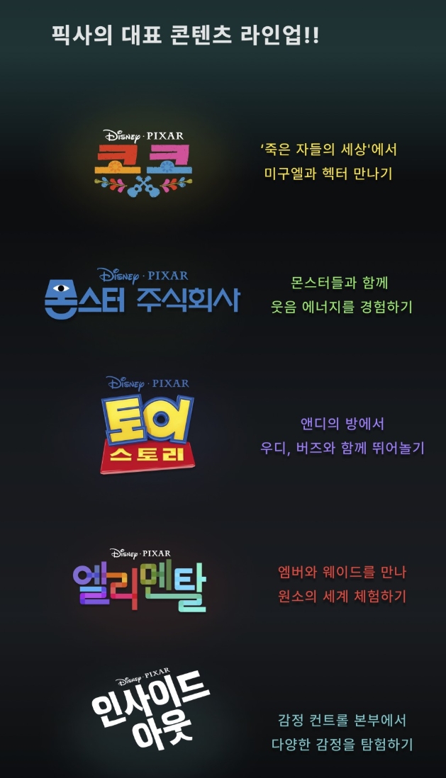 이번 전시는 어린이뿐 아니라, 어린 시절 픽사 영화를 보며 자란 어른들에게도 큰 감동을 선사할 전시입니다.