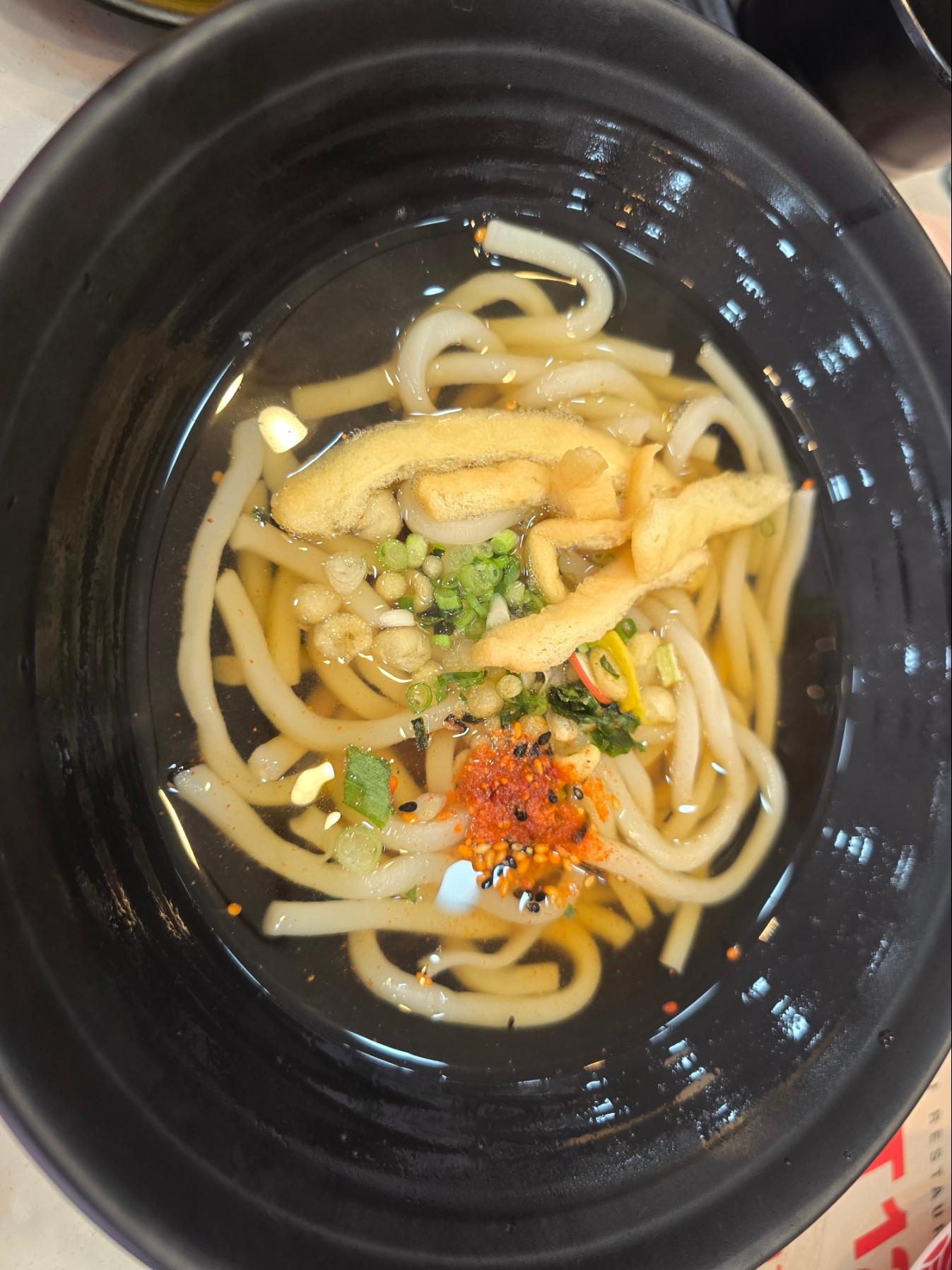사이드로 주문한 미니 우동은 국물 맛이 깔끔하고 괜찮았지만, 생각보다 너무 늦게 나와서 배가 부른 상태에서 먹게 된 게 아쉬웠습니다.