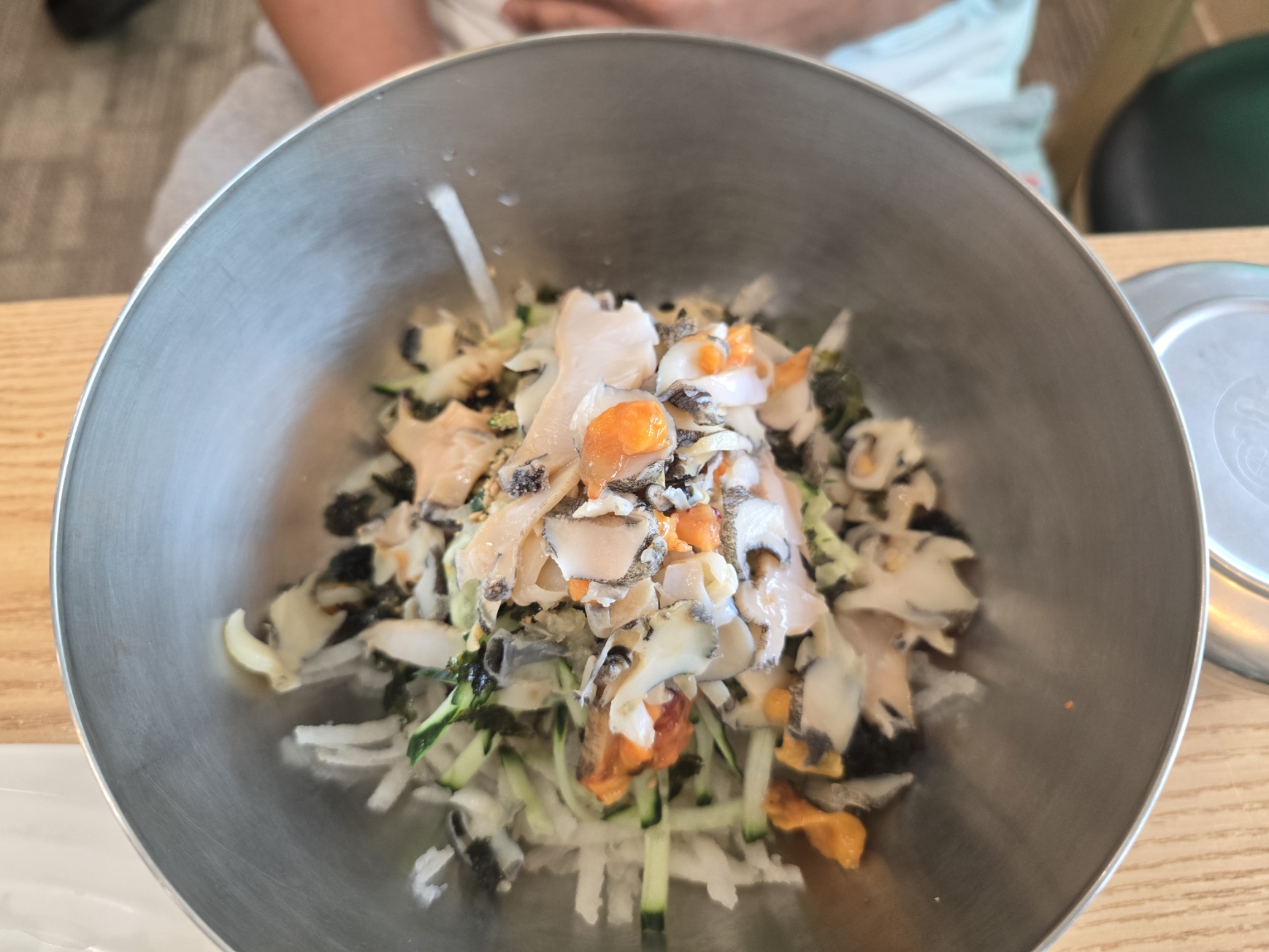 - 싱싱한 해산물 (전복, 멍게, 해삼 등)
