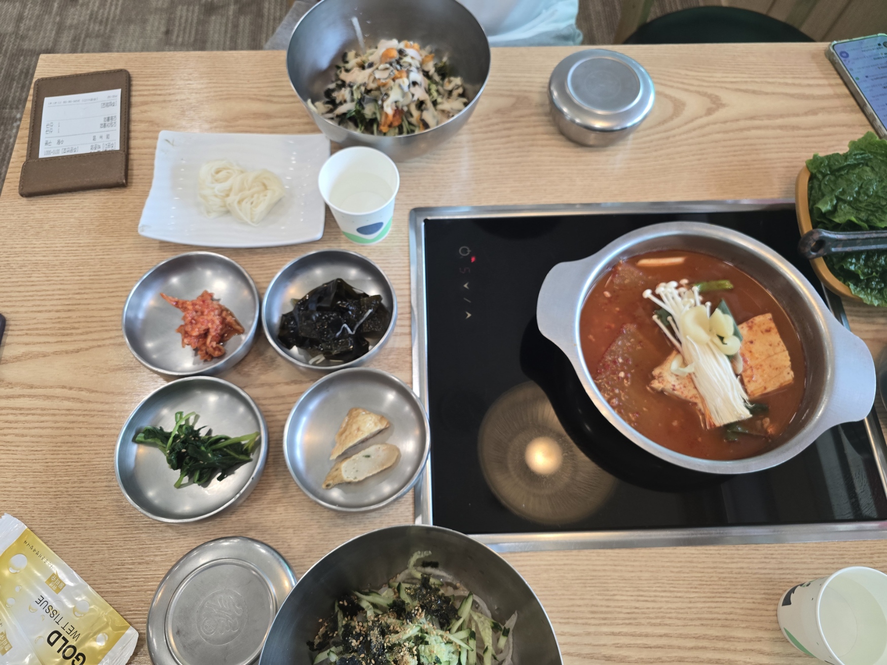 - 반찬: 명태젓갈, 미역무침, 나물, 어묵 등 4~5가지 깔끔하게 나옵니다